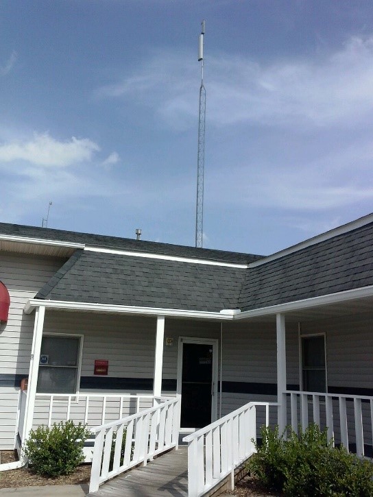 We got the Rohn Tower up at our office this past week. The first major installation project has been completed. We had our broadcast tower installed on our Royston Office which will be our head end. The tower is 50’ tall and will serve to transmit to our main tower site on Ginn Hill.